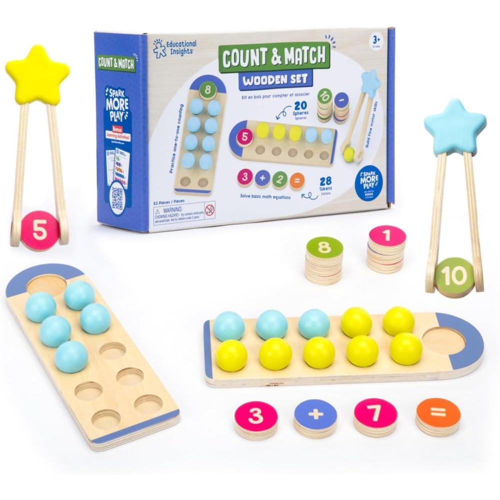 Educational Insights Count & Match Wooden Set – Counting Toys for Kids, Preschool Math Manipulatives & Fine Motor Skill Games, Toddler Learning Toys, Montessori Number Sets for Toddlers Ages 3