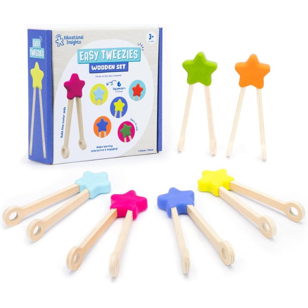 Educational Insights Easy Tweezies Small Group Set – Fine Motor Toys for Kids, Sensory Bin Tools, Preschool Classroom Must Haves & Therapy Toys, Wooden Tweezer Activity Kit for Toddlers Ages 3