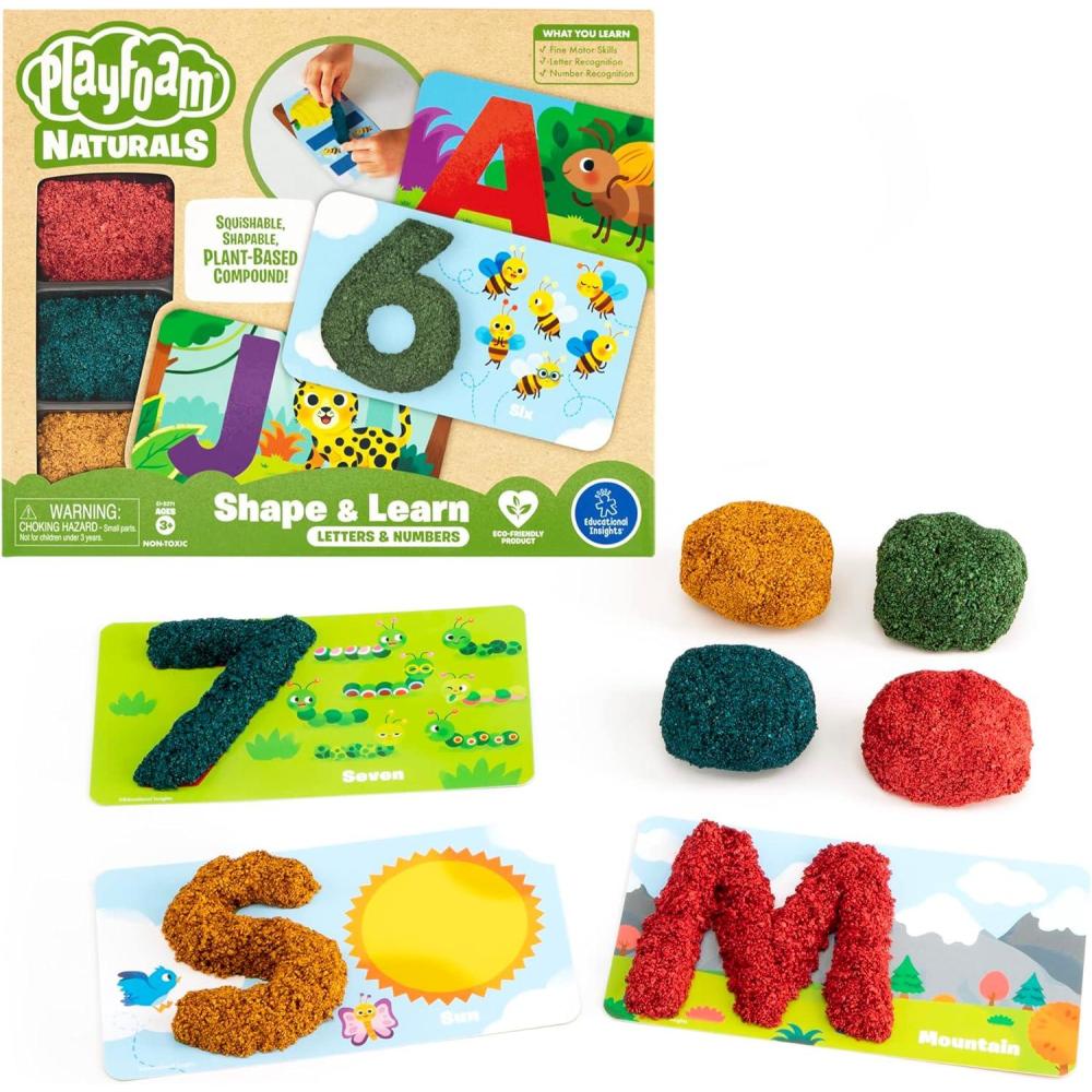 Educational Insights Plant-Based Playfoam Naturals Shape & Learn Letters & Numbers, 36 Cards, and 4 Colors of Playfoam, Ages 3